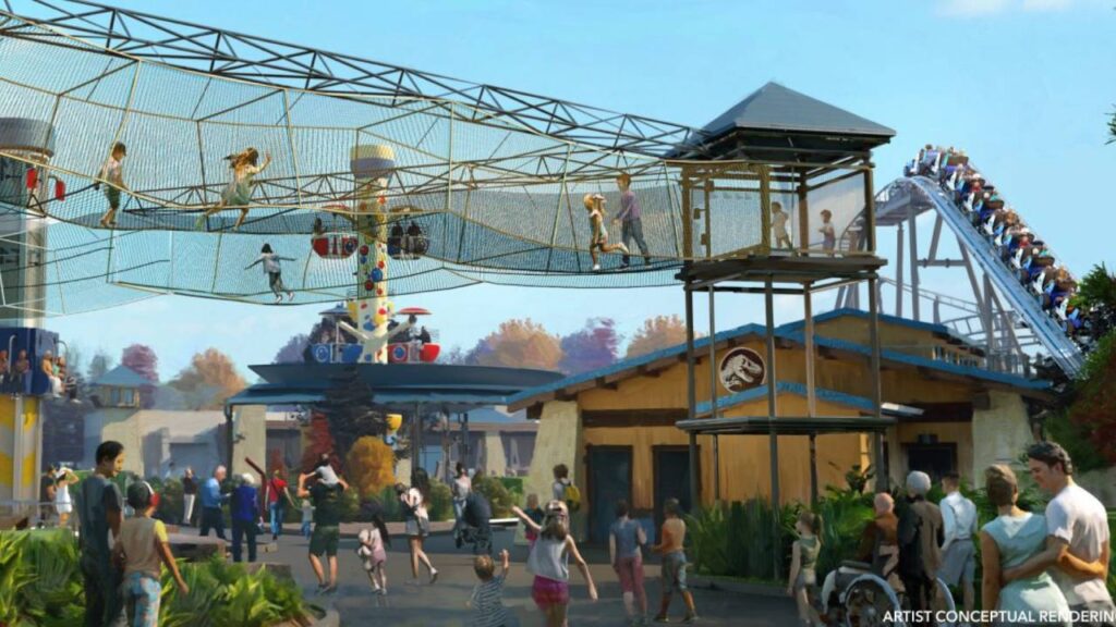 In Jurassic World Adventure Camp, visitors will be able to meet a newly-hatched dinosaur or climb Lookout Towers in the play area. The land will include a few attractions—a coaster called Jurassic World: Cretaceous Coaster, a drop ride and something called Mr. DNA’s Double Helix Spin.