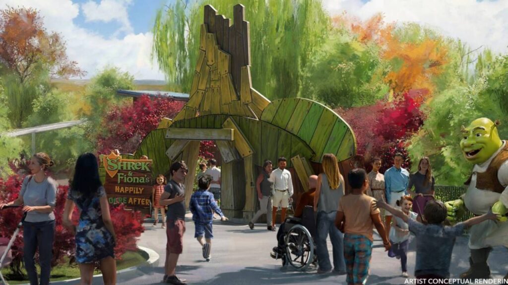In Shrek’s Swamp, visitors can meet Shrek and Fiona and take photos in an onion carriage. The land will also feature two interactive play areas—Shrek’s Swamp Rompin’ Stomp and Shrek’s Swamp Splash & Smash.